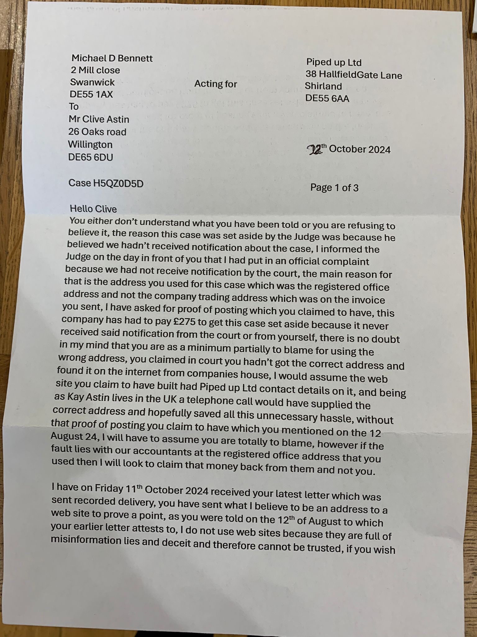It focuses on an ongoing legal case I have with Piped Up Limited. This case revolves around a dispute concerning the unauthorised use of copyrighted written content. I originally created the copywriting for the client’s website, but despite completing the work, payment was not received, and the content remained live on their site for over three and a half years (see WayBack Machine here to see my content on their site, largely unchanged to this day).